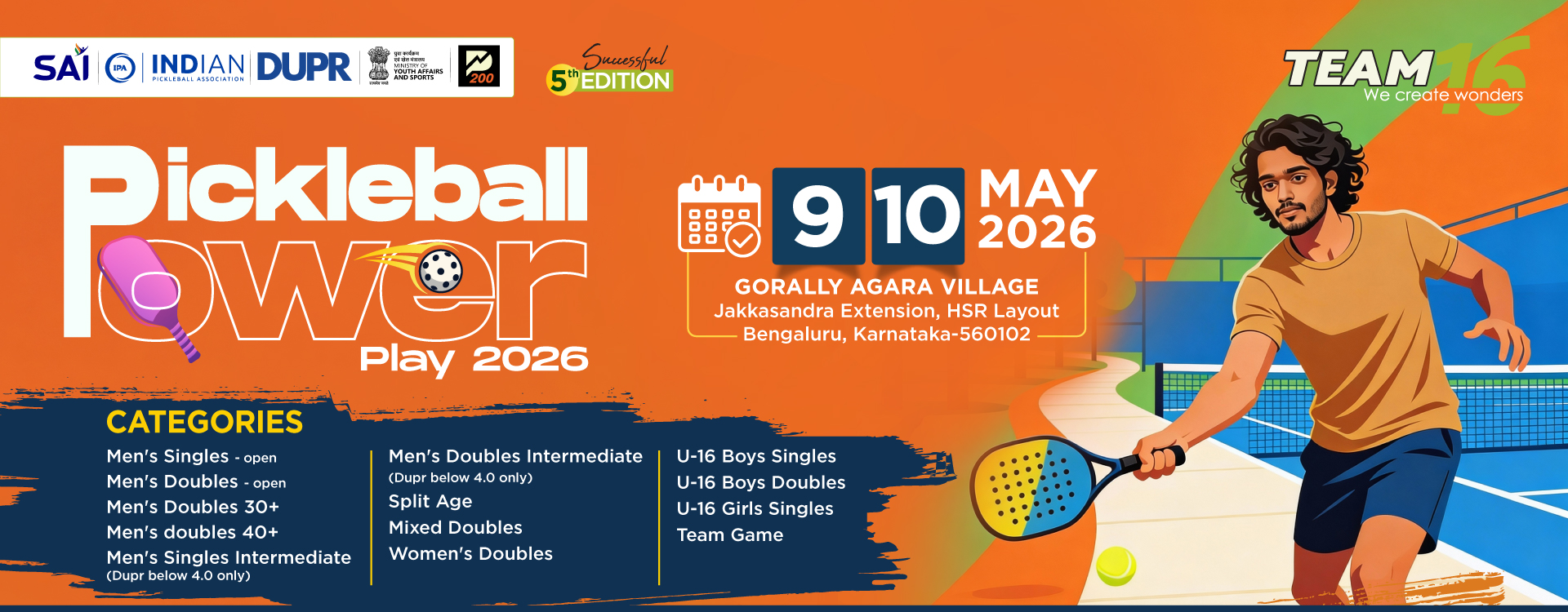 Men’s Singles Intermediate: (DUPR below 4.0 only)