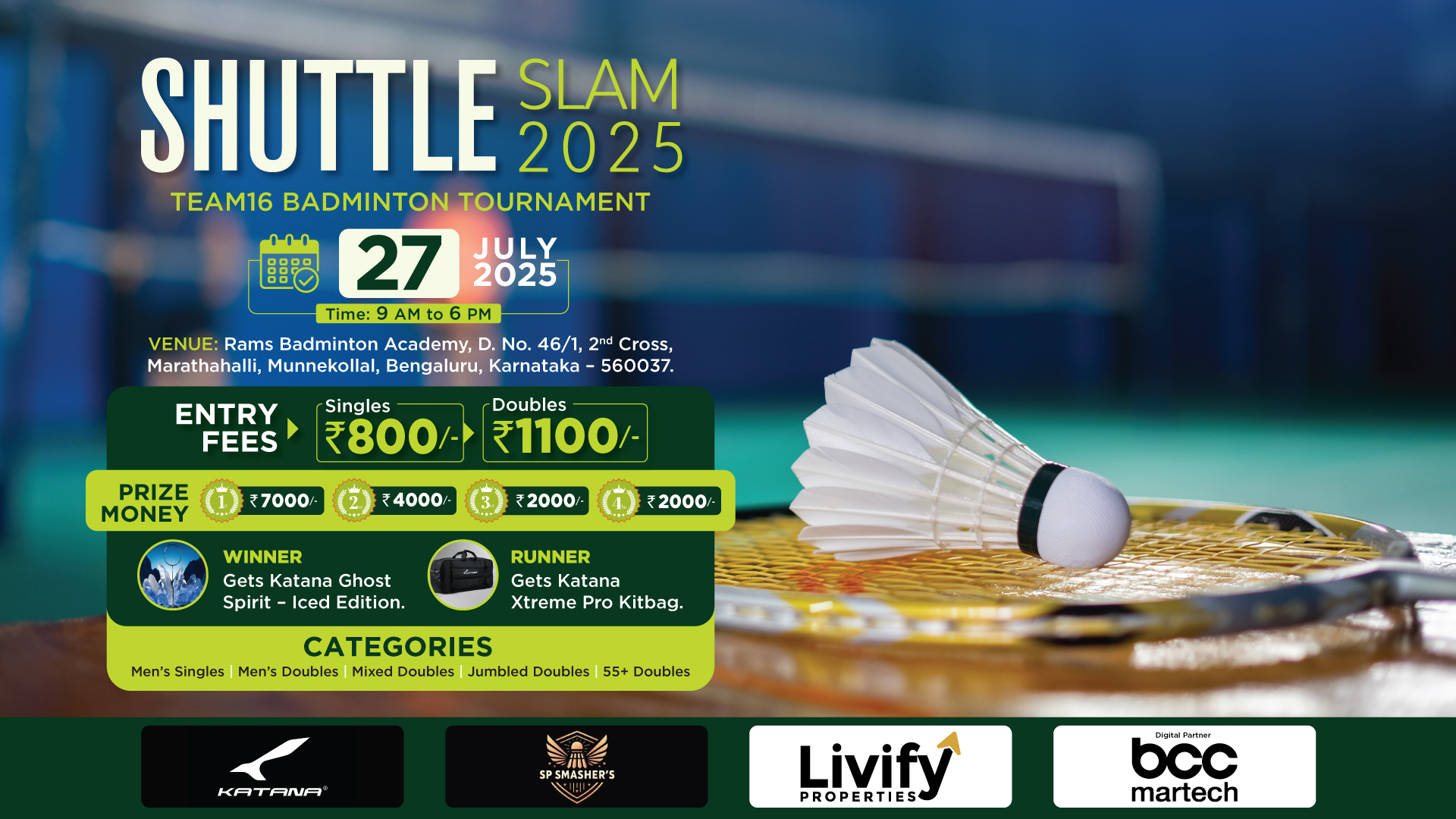 Exclusive Lining Champ -76 Feather Shuttles will be used for all matches.